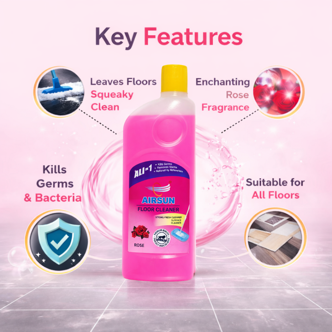 Transform your cleaning routine with Airsun Rose Floor Cleaner, a powerful and refreshing floor cleaning solution designed to keep your floors spotless and germ-free.